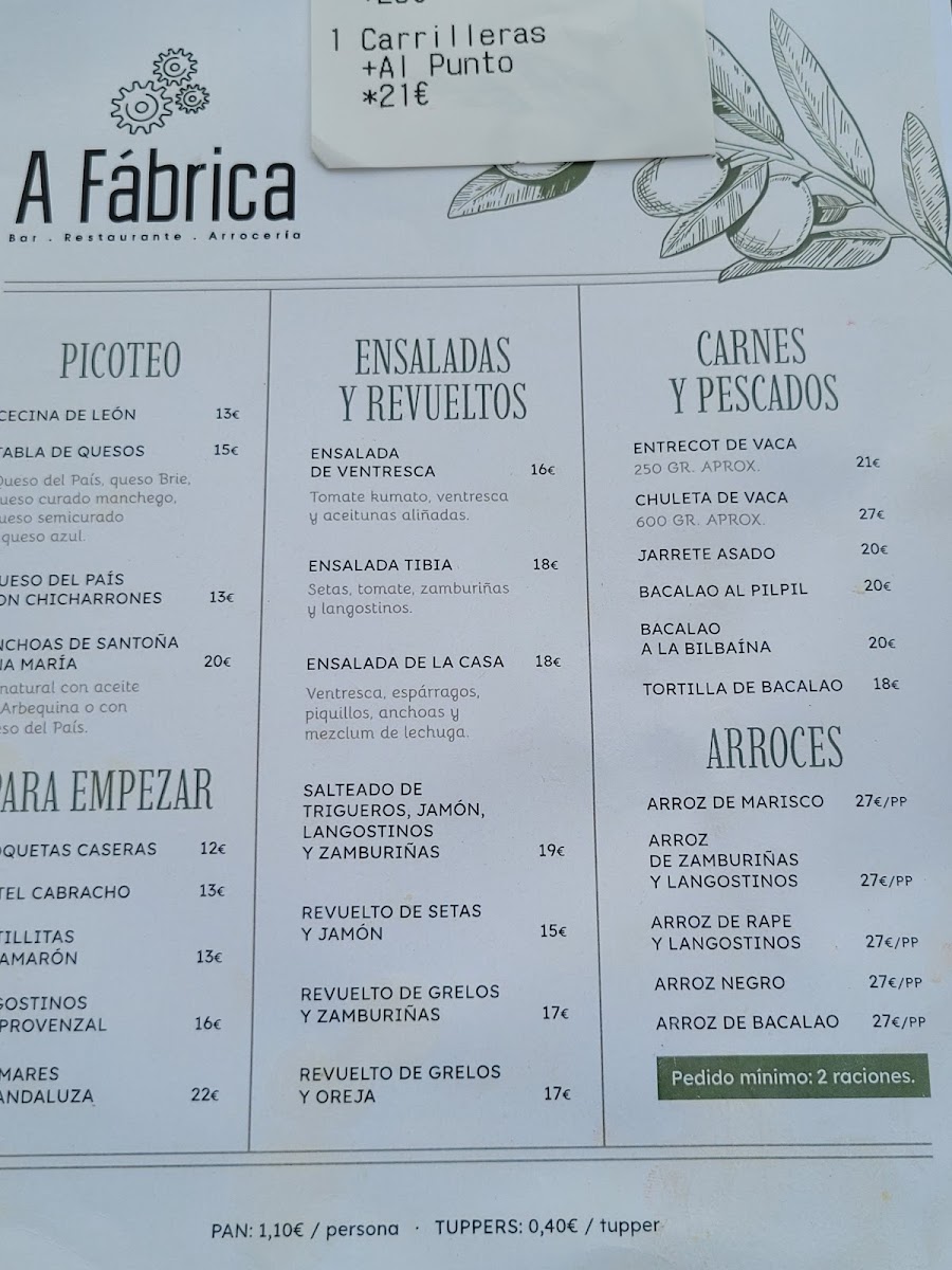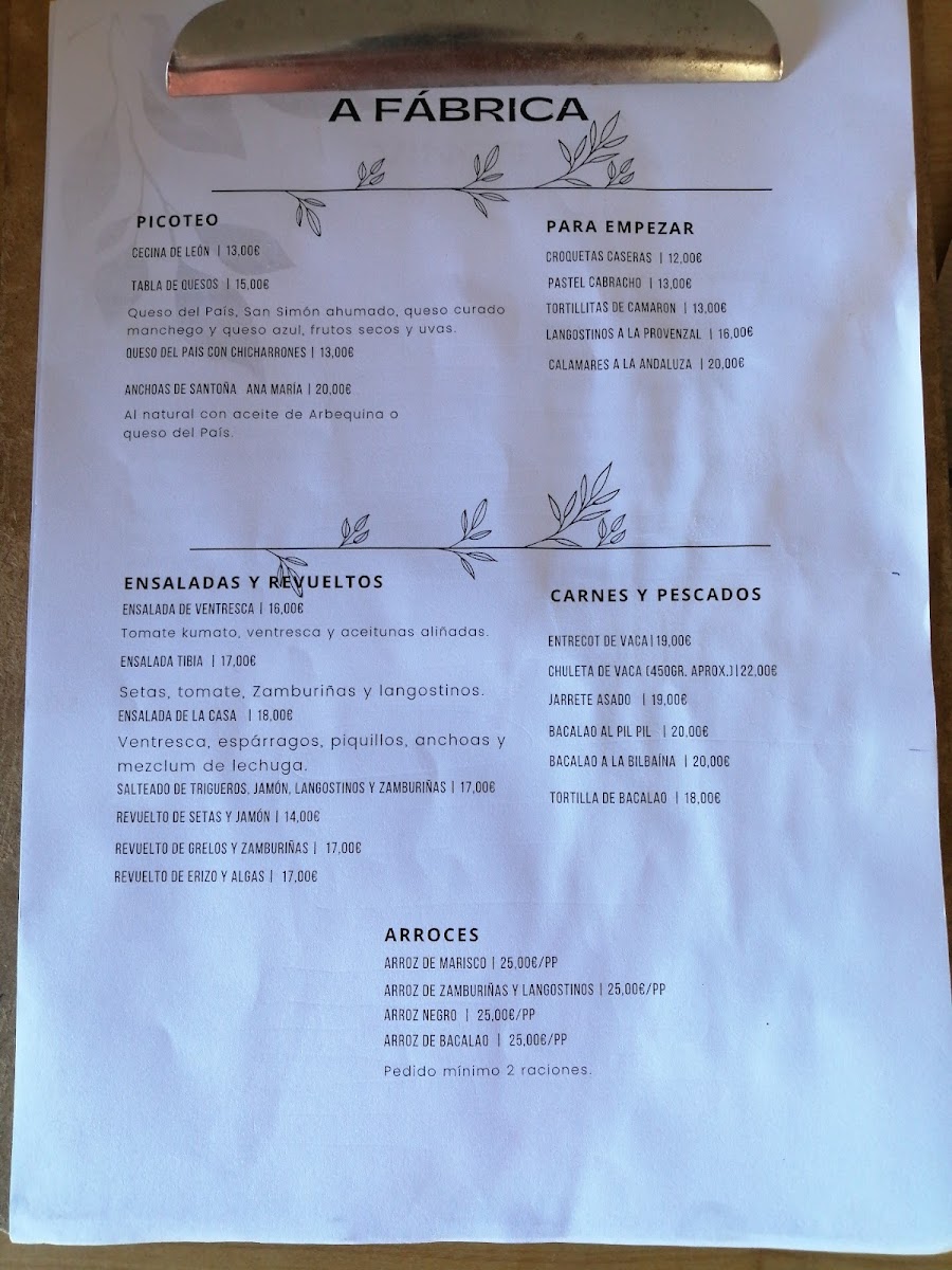 Welcome to Restaurante A Fabrica, nestled in the charming Oleiros area of A Coruña. This cozy establishment offers not just delicious food but also stunning views of the Ría, making it an ideal spot for a memorable dining experience. Customers rave about the exquisite dishes that are perfect for sharing, combining quality ingredients with generous portions. Each meal is thoughtfully prepared, ensuring that the flavors delight the palate.